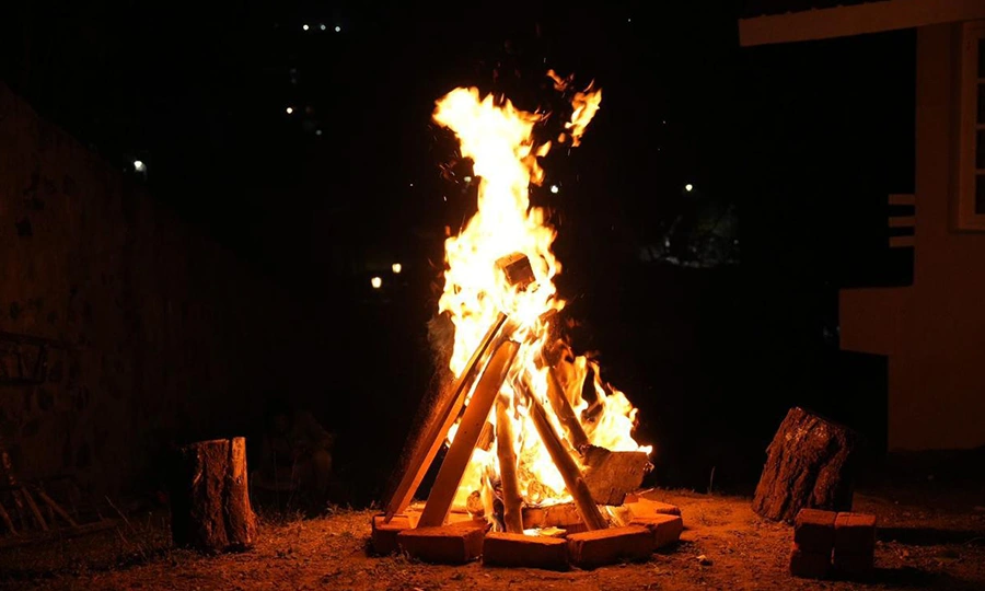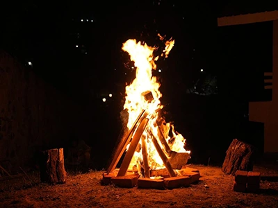 Indoor fireplace with a 50 sq ft area, ideal for calm and cool evenings